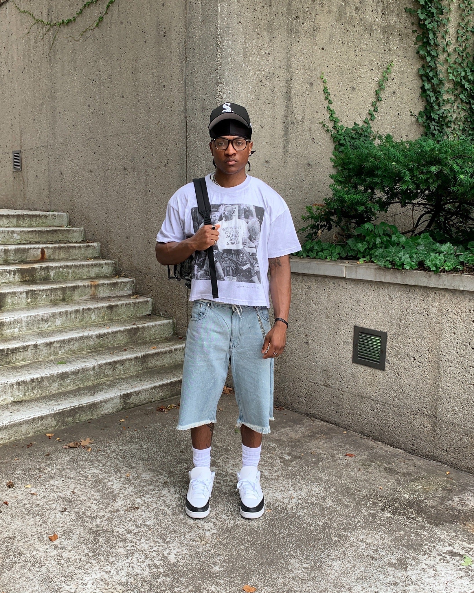 FITS SLIGHTLY OVERSIZED WITH A CROPPED BODY LENGTH.